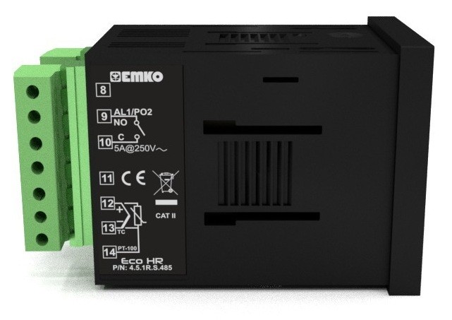 ECO HR PID from Emko Elektronik is a compact sized PID Temperature Controller with auto tuning PID 230 VAC powered. Input accepts thermocouples (J, K, R,S, T) and Pt100 sensors. Pulse and 1 Relay output.