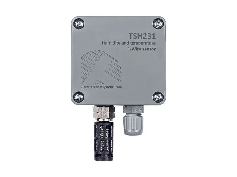 TSH231 is a waterproof temperature and humidity sensor with a 1-Wire interface. Suitable for use with Teracom controllers. -20 to 60 °C range with ±0.4 °C accuracy from -10 to 60 °C.